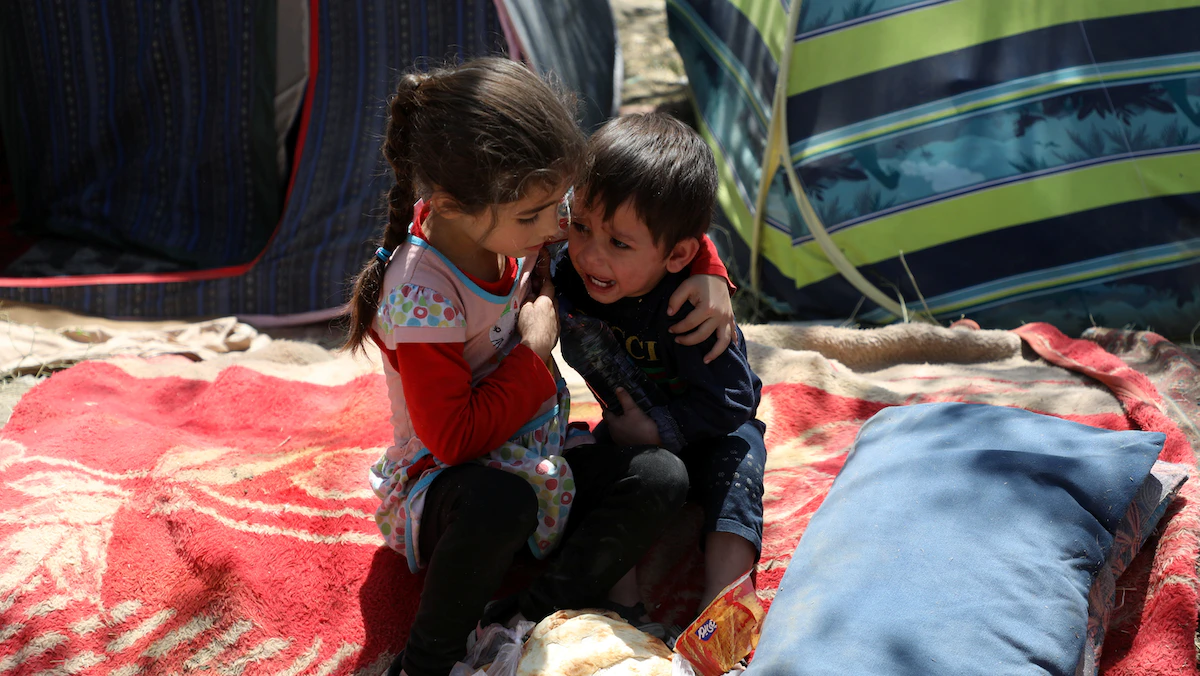 وفي خيمة تتكئ إلى جدار من الطين، يُجلس نادر نبيزاده، الأب لأربعة أطفال، ابنته الرضيعة على إحدى ركبتيه، فيما خرجت زوجته من الخيمة على عجل عندما سمعت أن عمال الإغاثة يوزعون الأرزّ، لكنها سرعان ما عادت خالية الوفاض.