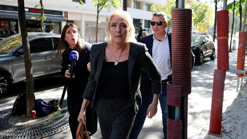 مارين لوبان زعيمة "التجمع الوطني" اليميني المتطرف تصل إلى مقر الحزب في العاصمة باريس. 7 أكتوبر 2025 - REUTERS