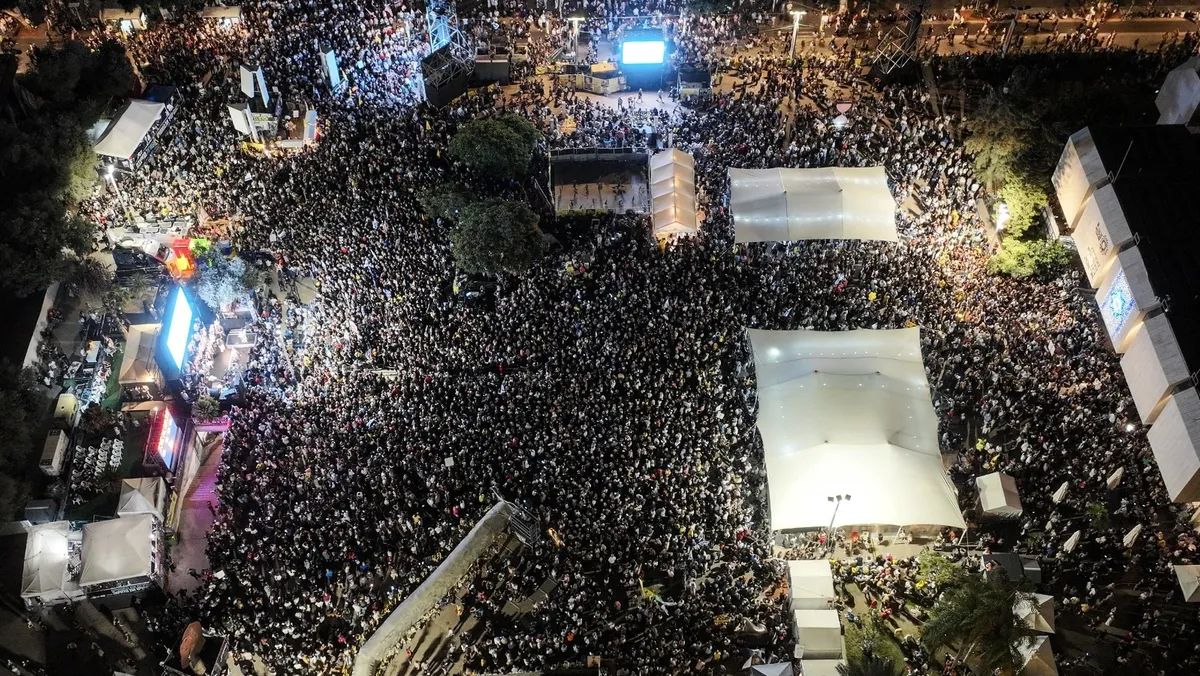 احتشد آلاف الإسرائيليين في "ساحة المحتجزين" مرددين هتافات "شكراً ترمب" دعماً لاتفاق وقف النار في قطاع غزة، فيما قوبلت إشادة مبعوث الرئيس الأميركي دونالد ترمب إلى الشرق الأوسط ستيف ويتكوف برئيس الوزراء الإسرائيلي بنيامين نتنياهو بصيحات استهجان من الحشود.