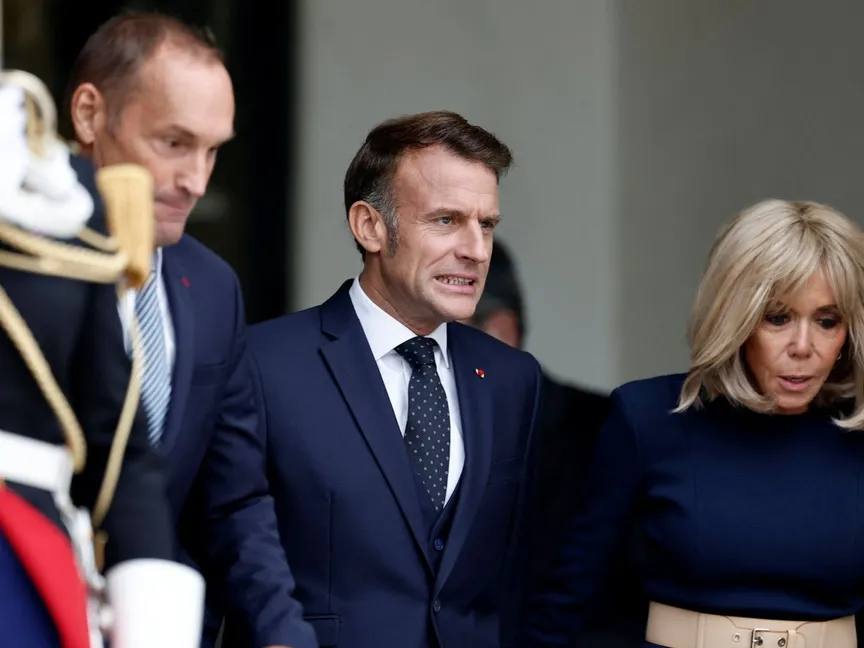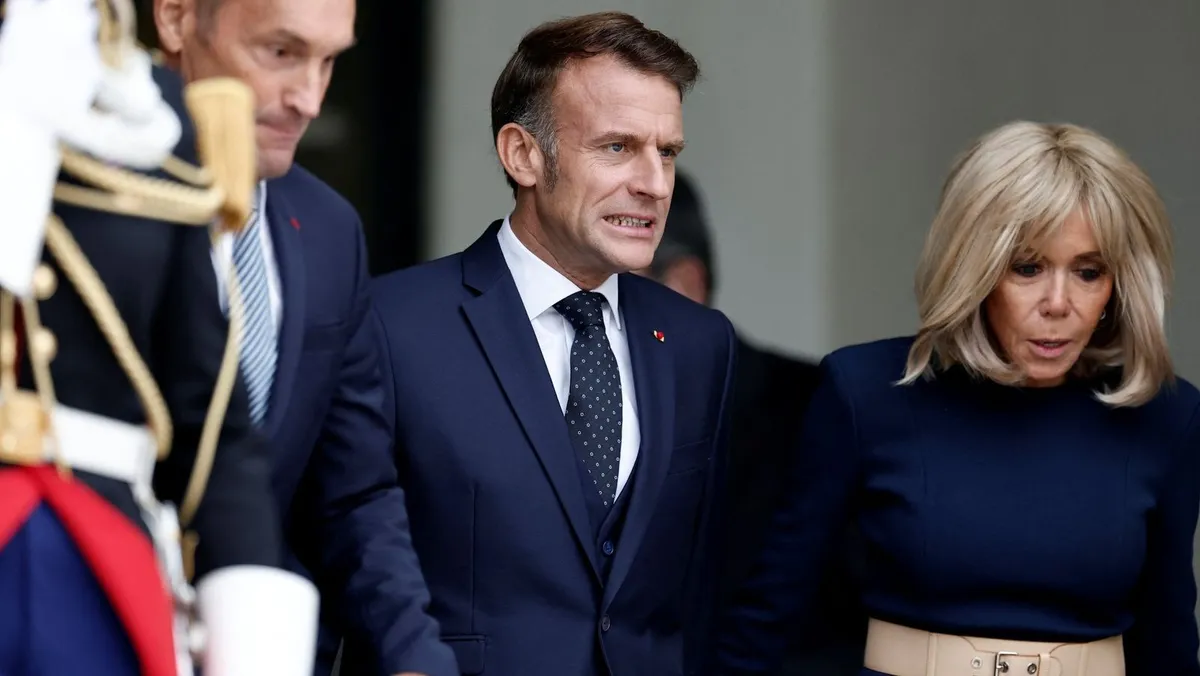الرئيس الفرنسي إيمانويل ماكرون وزوجته بريجيت ماكرون في قصر الإليزية، 8 أكتوبر 2025 - REUTERS