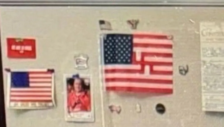 علم أميركي معدل يحمل رمزاً نازياً داخل مكتب أحد مساعدي النائب الجمهوري ديف تايلور - Politico