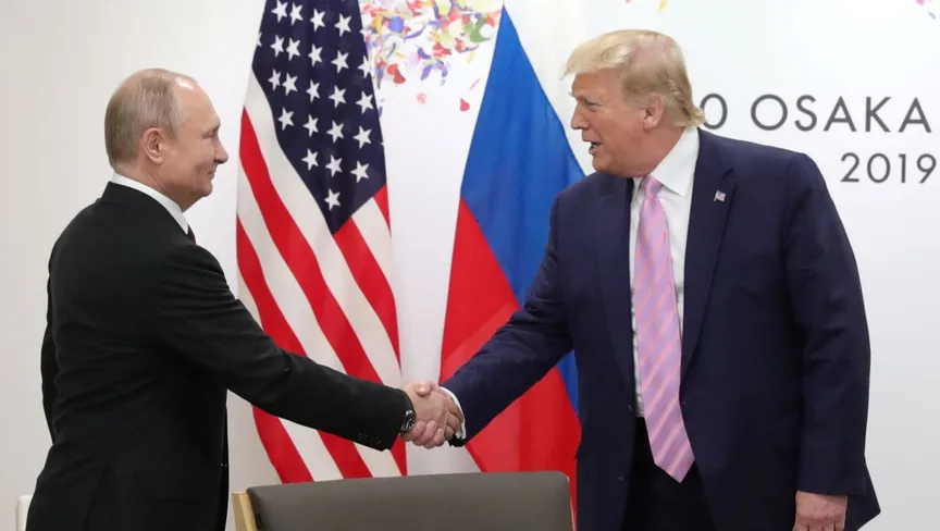 مصافحة بين ترامب وبوتين خلال قمة مجموعة العشرين في اليابان في عام 2019 - REUTERS