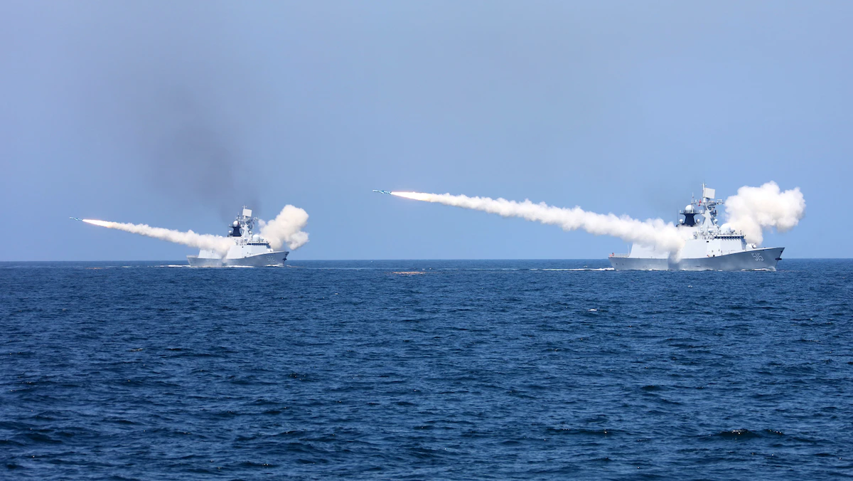 سفينتان حربيتان صينيتان تطلقان عدة صواريخ خلال مناورات عسكرية في البحر الأصفر - 7 أغسطس 2017 - REUTERS