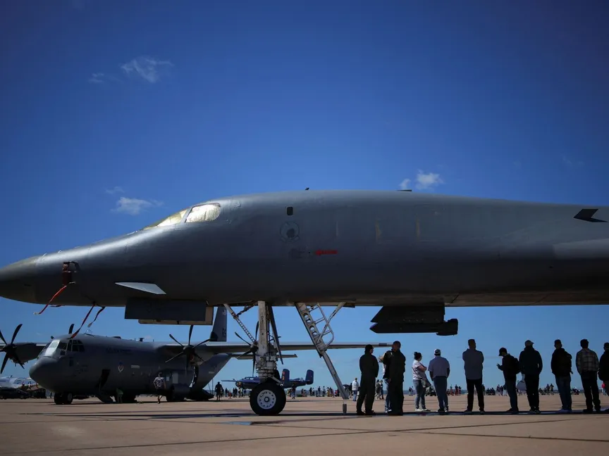 قاذفة روكويل B-1 لانسر خلال عرض جوي في قاعدة دايس الجوية في أبيبلين، تكساس، الولايات المتحدة، 20 أبريل 2025 - REUTERS