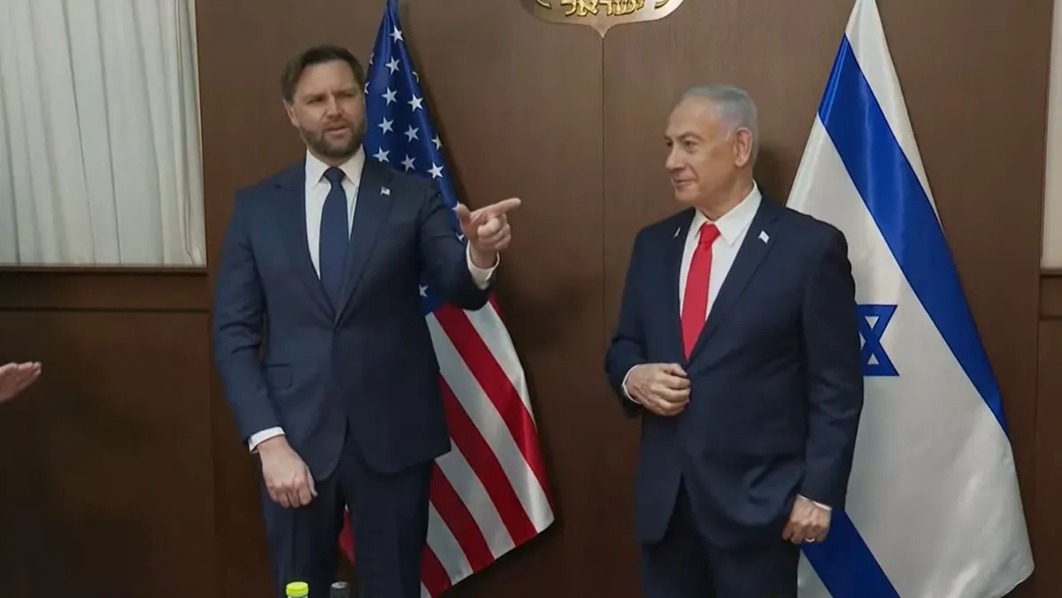 وأضاف فانس، في مطار بن جوريون بتل أبيب قبيل مغادرته إسرائيل، أن تصويت الكنيست الإسرائيلي "إذا كان مناورة سياسية، فهي مناورة سياسية غبية جداً"، حسبما نقلت وكالة "أسوشيتد برس".