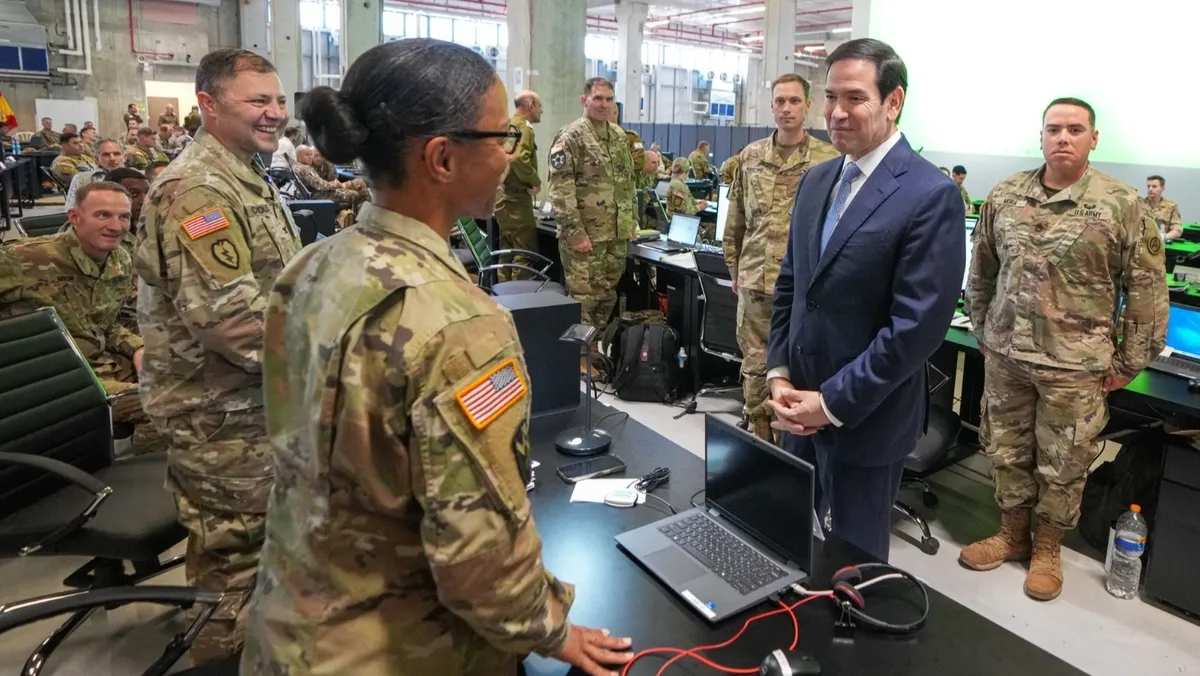 صورة نشرها وزير الخارجية الأميركي ماركو روبيو خلال زيارته مركز التنسيق المدني العسكري جنوب إسرائيل. 24 أكتوبر 2025 - @SecRubio