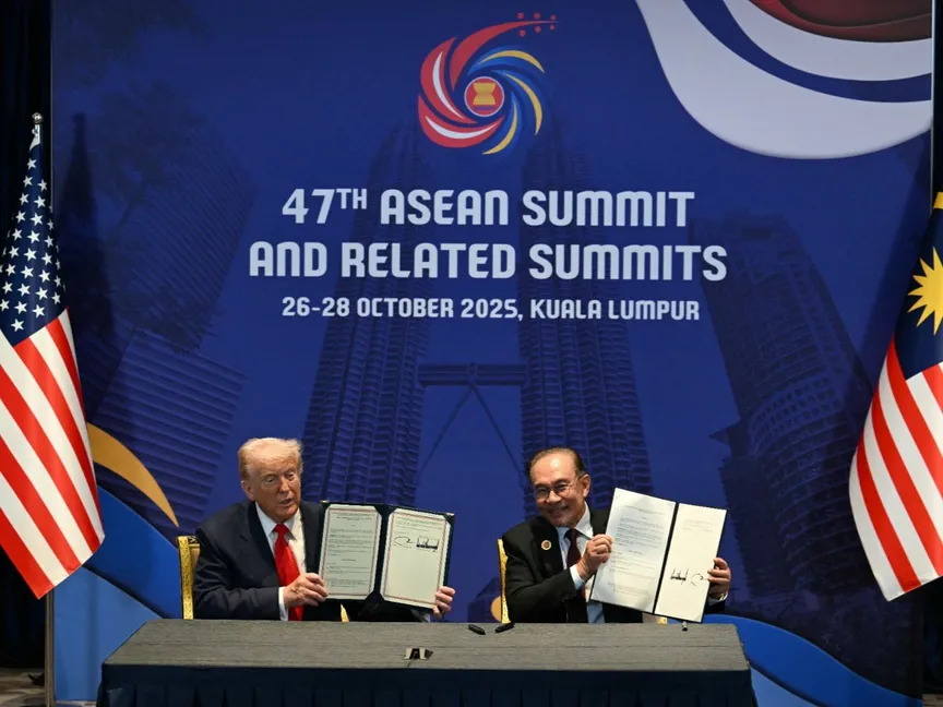 وأبرم الرئيس الأميركي دونالد ترمب، الذي يزور العاصمة الماليزية كوالالمبور لحضور قمة رابطة دول جنوب شرق آسيا "آسيان"، اتفاقات تجارية متبادلة مع نظيريه الماليزي والكمبودي، بالإضافة إلى اتفاقية تجارية إطارية مع تايلندا تتعلق بمعالجة الحواجز الجمركية، وغير الجمركية.