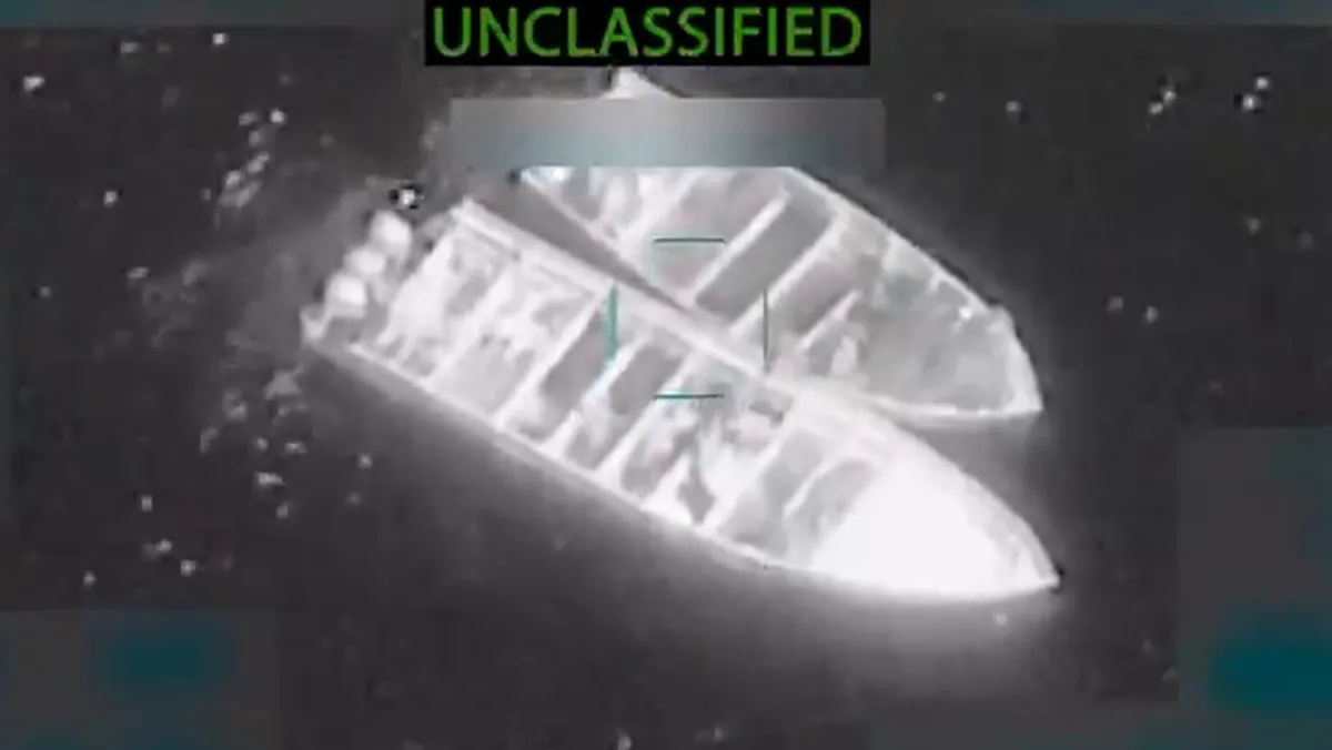 ونشر هيجسيث لقطات للضربات الأخيرة على مواقع التواصل الاجتماعي، تُظهر قاربين يتحركان في الماء في لقطات منفصلة، أحدهما محمل بكمية كبيرة من الطرود، ثم انفجر كلاهما فجأةً وشوهدا مشتعلين.