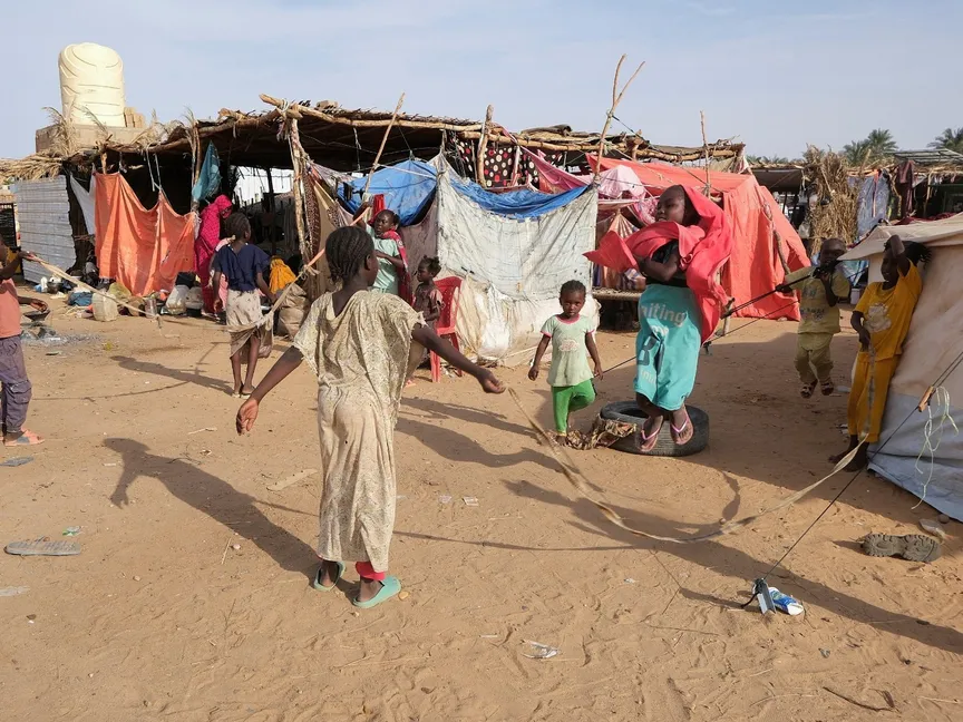 سودانيات نازحات من الفاشر يلعبن في مخيم للنازحين بالضبة في السودان. 6 سبتمبر 2025 - Reuters