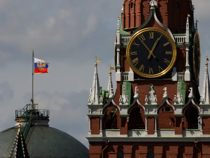 العلم الروسي فوق قبة الكرملين خلف برج سباسكايا، في وسط موسكو، روسيا، 4 مايو 2023 - REUTERS
