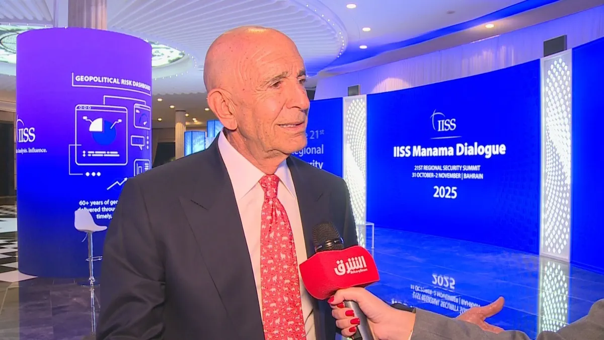 وأشاد توم باراك بـ"قوة" الفريق الأميركي الذي يصوغ السياسة الإقليمية حالياً، قائلاً: "لديكم أميركا تعمل إلى جانبكم، لديكم جاريد كوشنر وستيف ويتكوف، من أذكى الأشخاص في العالم، يعملون مع الرئيس ترمب".