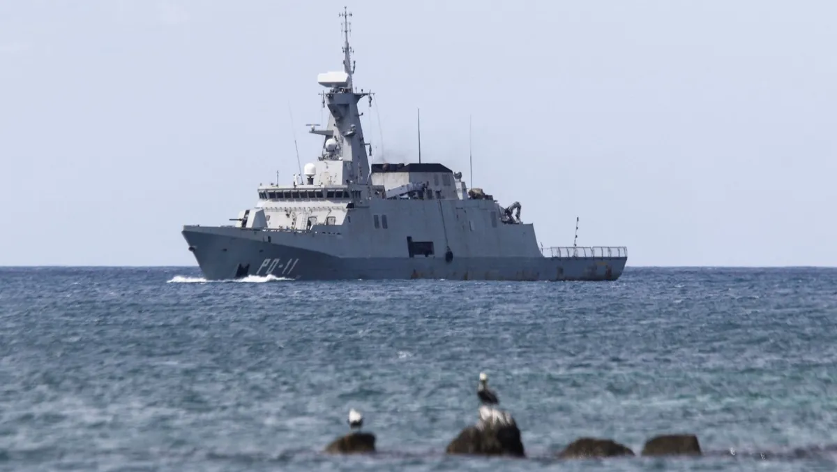 سفينة تابعة للقوات البحرية الفنزويلية قبالة ساحل البحر الكاريبي وسط تصاعد التوترات مع الولايات المتحدة في بويرتو كابيلو بفنزويلا. 24 أكتوبر 2025 - REUTERS