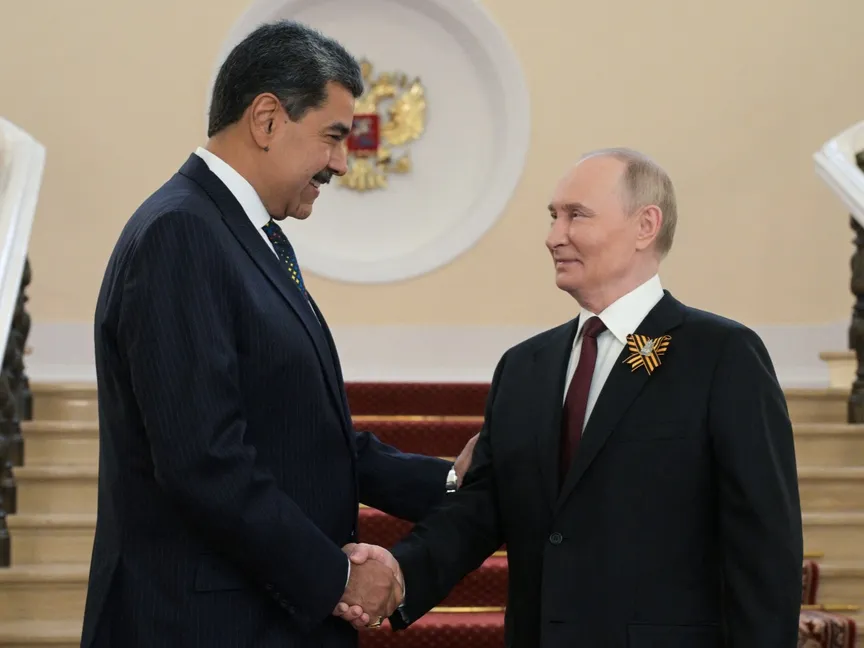 الرئيس الروسي فلاديمير بوتين يستقبل نظيره الفنزويلي نيكولاس مادورو في احتفالات عيد النصر، موسكو، 9 مايو 2025 - REUTERS