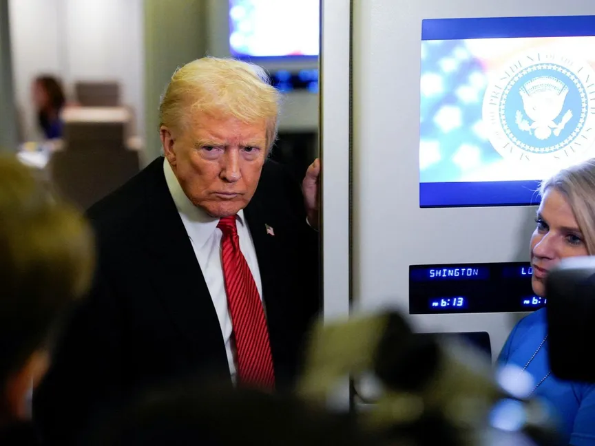 الرئيس الأميركي دونالد ترمب يدلي بتصريحات على متن طائرة الرئاسة في طريقه إلى واشنطن، 2 نوفمبر 2025 - REUTERS