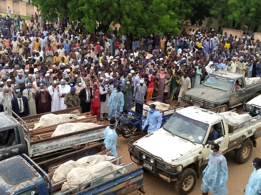 شاحنات تحمل جثامين لأشخاص سقطوا على يد مسلحين مشتبه بهم من جماعة بوكو حرام بولاية يوبي في نيجيريا. 3 سبتمبر 2024 - Reuters