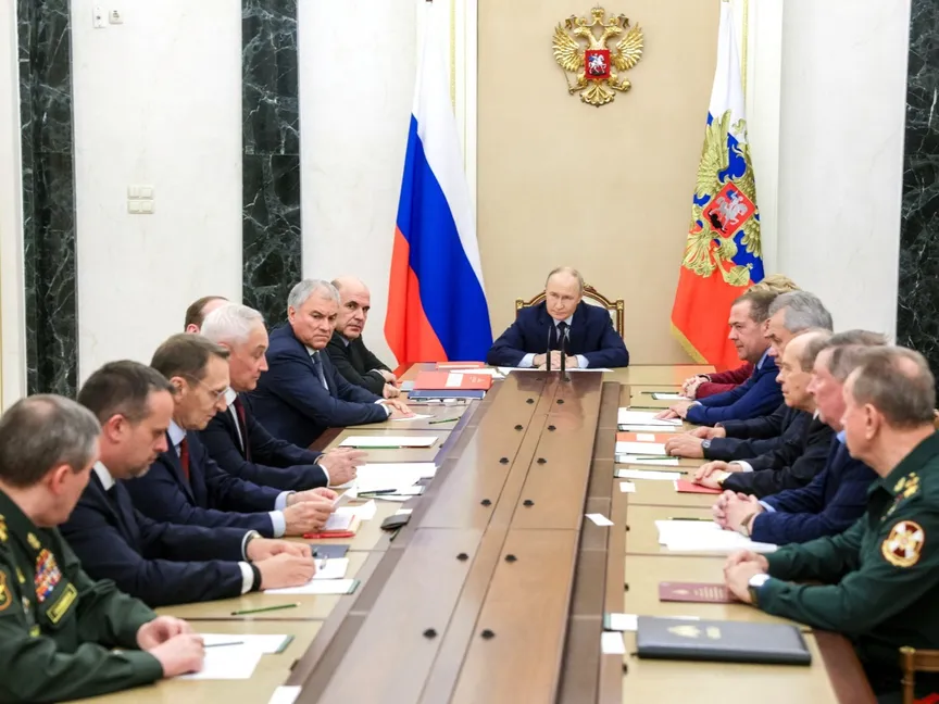 الرئيس فلاديمير بوتين خلال اجتماع مع أعضاء مجلس الأمن الروسي في موسكو. 5 نوفمبر 2025 - رويترز