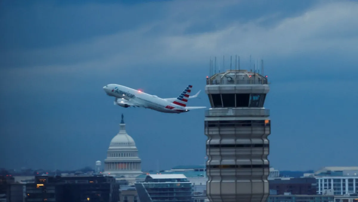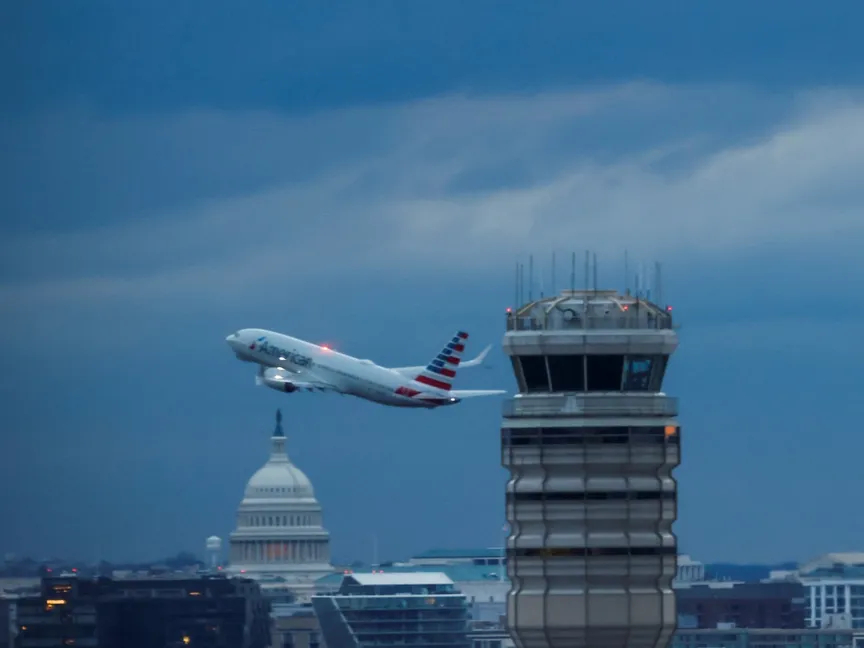 طائرة تابعة لشركة "أميركان آرلاينز" تغادر مطار رونالد ريجان الوطني في واشنطن. 1  فبراير 2025 - Reuters