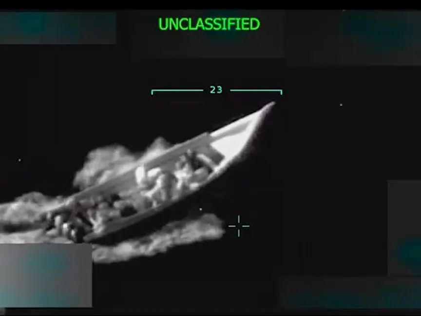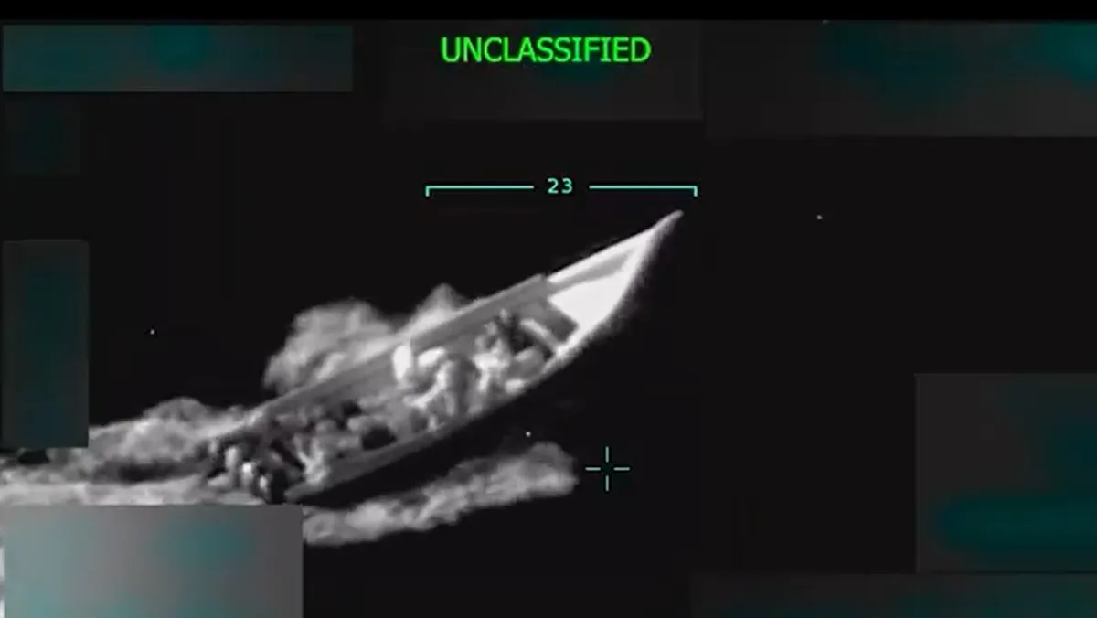 لقطة نشرها وزير الحرب الأميركي لقارب لـ"تهريب المخدرات" قبل استهدافه قبالة فنزويلا. 2 سبتمبر 2025 - @PeteHegseth