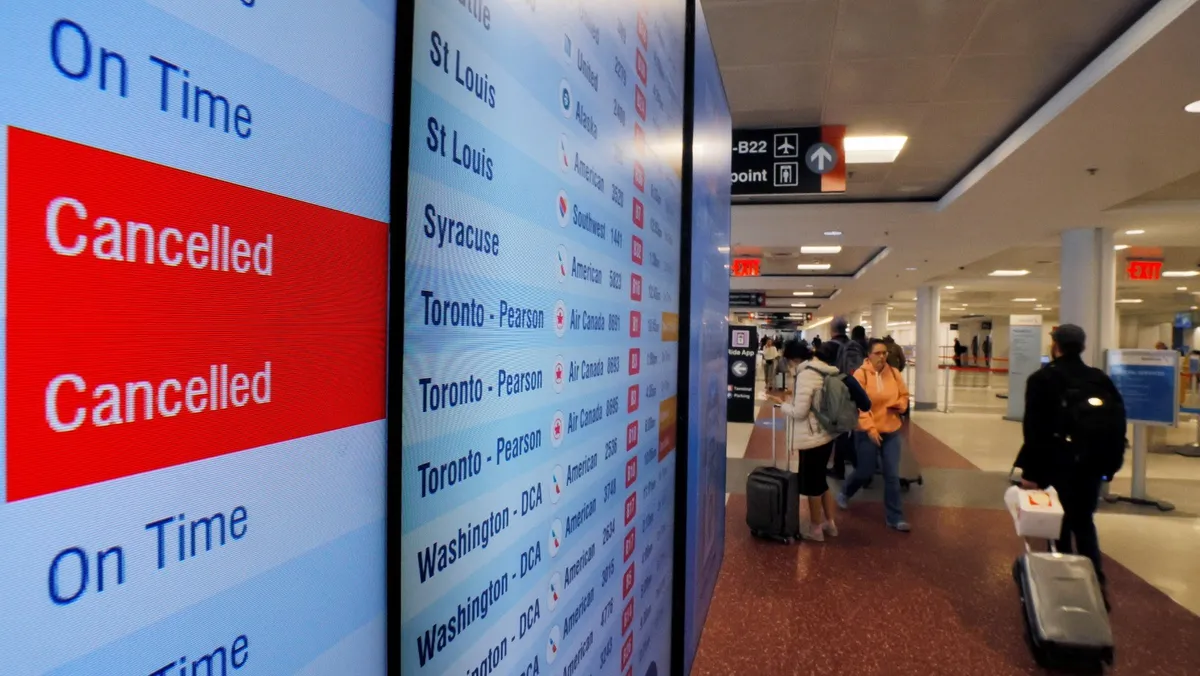 تهدد اضطرابات المطارات الأميركية، الناجمة عن الإغلاق الحكومي الأطول في تاريخ الولايات المتحدة، بتداعيات اقتصادية واسعة، إذ ألغت شركات الطيران الأميركية 1330 رحلة جوية في اليوم الثاني من تخفيضات الرحلات الجوية التي فرضتها الحكومة الفيدرالية في جميع أنحاء البلاد، السبت.