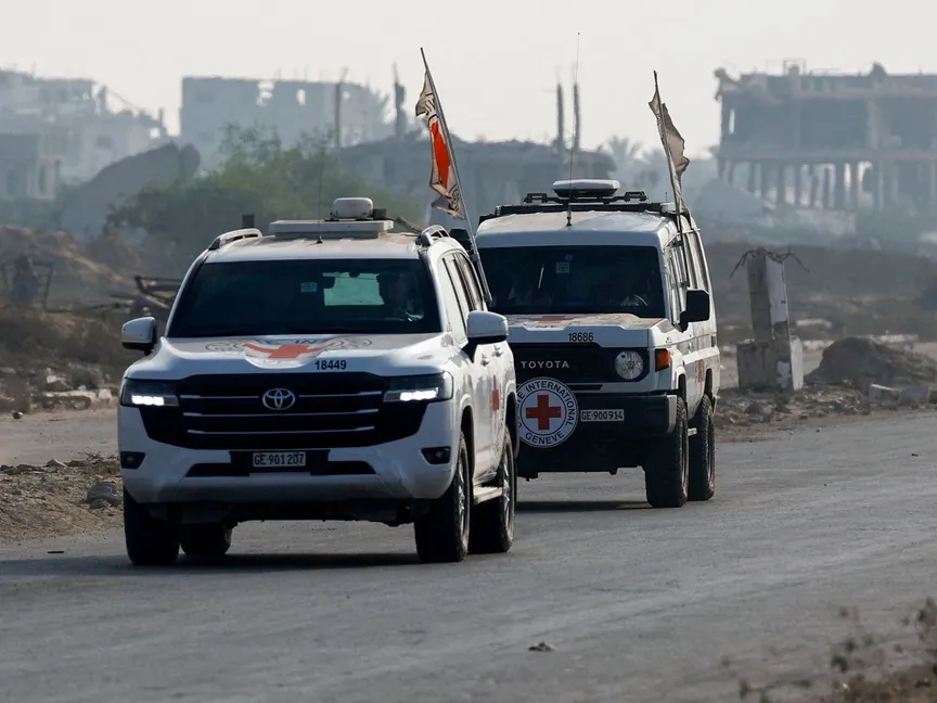 طواقم اللجنة الدولية للصليب الأحمر تتسلم رفات الجندي الإسرائيلي هدار جولدن الذي لقي مصرعه في حرب 2014 بقطاع غزة. 9 نوفمبر 2025 - REUTERS