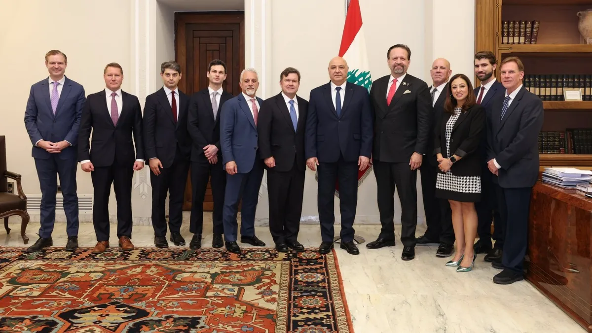 الرئيس اللبناني جوزاف عون رفقة وفد وزارة الخزانة الأميركية في قصر بعبدا بالعاصمة بيروت. 9 نوفمبر 2025 - X/@LBpresidency