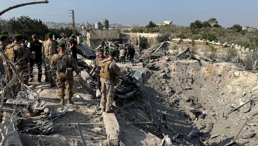 جود من الجيش اللبناني يتجمعون في موقع متضرر جراء غارات إسرائيلية في قرية العباسية في قضاء صور، جنوب لبنان. 6 نوفمبر 2025 - REUTERS
