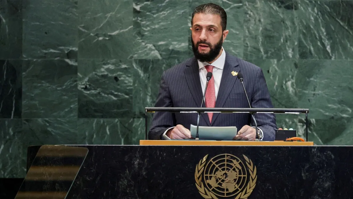 الرئيس السوري أحمد الشرع يلقي كلمة أمام الجمعية العامة للأمم المتحدة في نيويورك بالولايات المتحدة. 24 سبتمبر 2025 - Reuters
