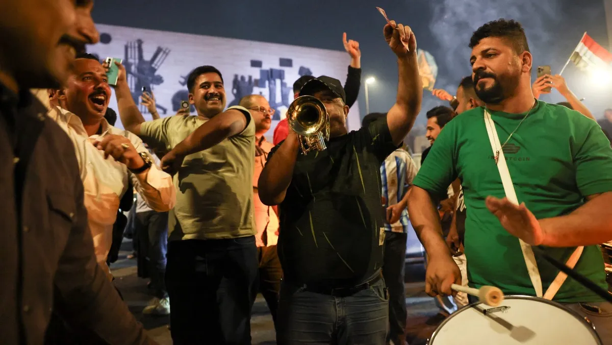 عراقيون يحتفلون بظهور النتائج الأولية لانتخابات مجلس النواب في العاصمة العراقية بغداد. 12 نوفمبر 2025 - REUTERS