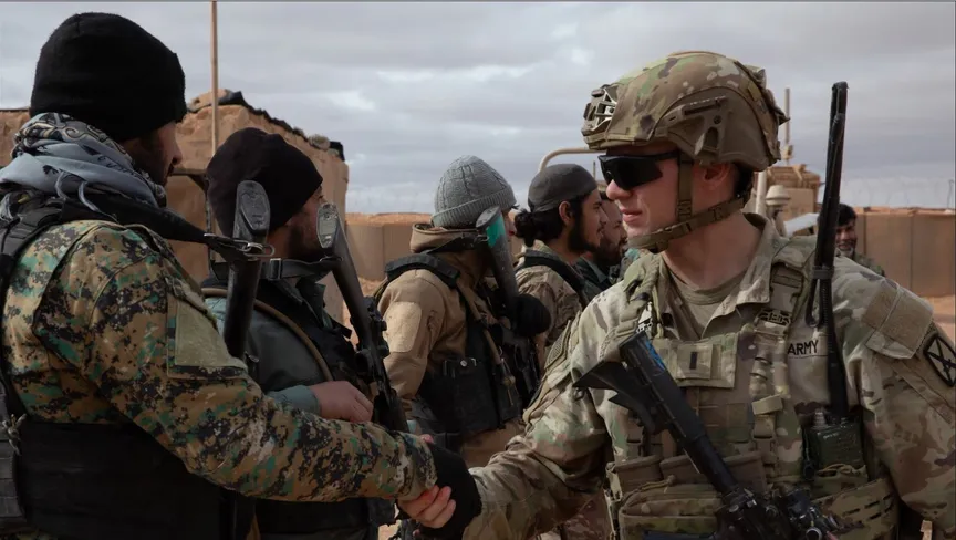 جندي أميركي يصافح قوات سورية. - القيادة المركزية الأميركية