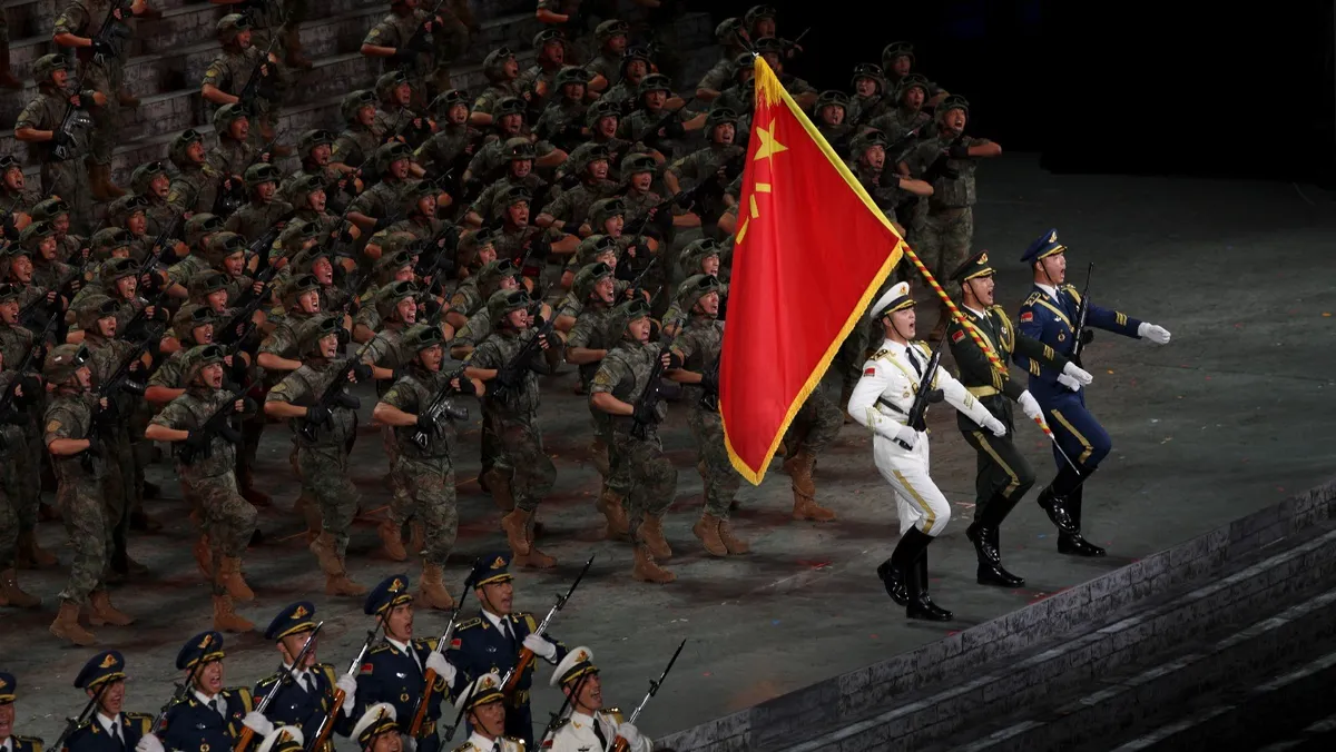 أفراد من الجيش الصيني خلال عرض عسكري بمناسبة الذكرى الثمانين لنهاية الحرب العالمية الثانية في قاعة الشعب الكبرى في بكين بالصين. 3 سبتمبر 2025 - Reuters