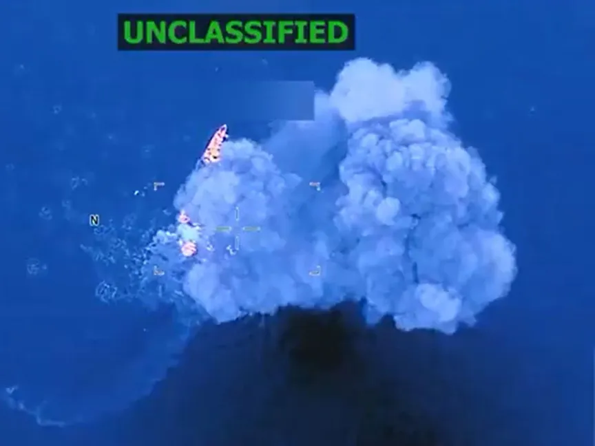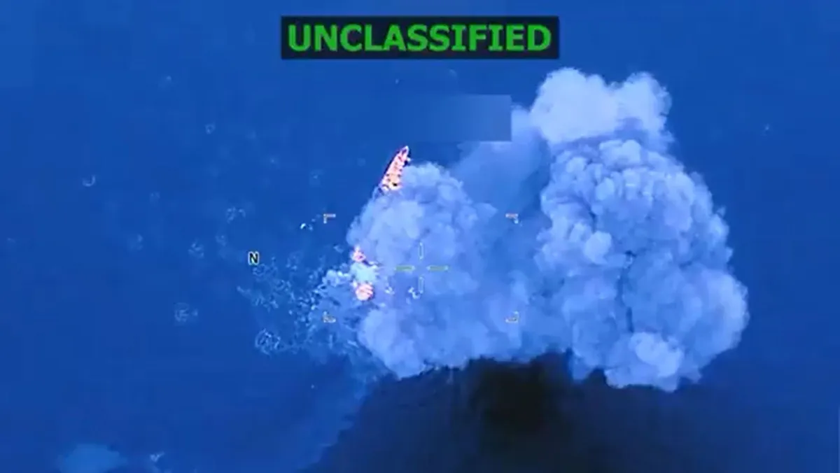 لقطة من فيديو لقصف أميركي على سفينة كولومبية في الكاريبي، 17 أكتوبر 2025 - SecWar
