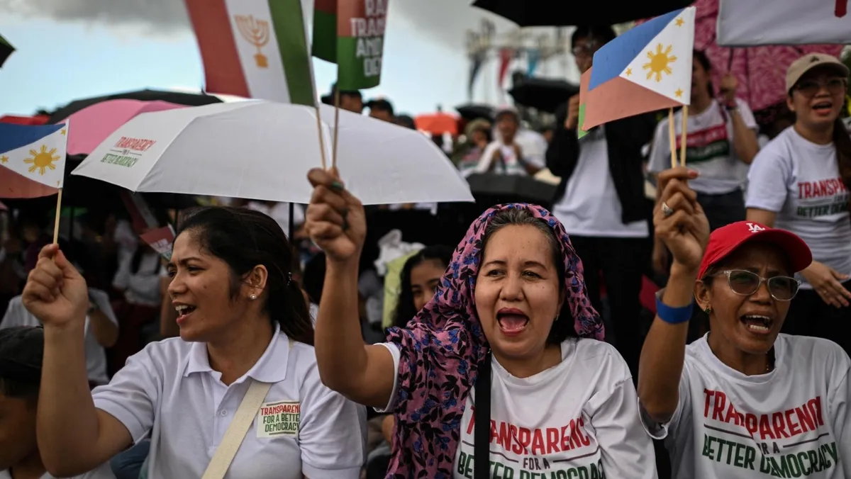 قالت نائبة رئيس الفلبين، الاثنين، إن الرئيس فرديناند ماركوس جونيور يواجه "أزمة ثقة"، وذلك فيما شهد اليوم الثاني من التظاهرة ضد الفساد مشاركة مئات الآلاف من المحتجين، حسبما أوردته "بلومبرغ".
