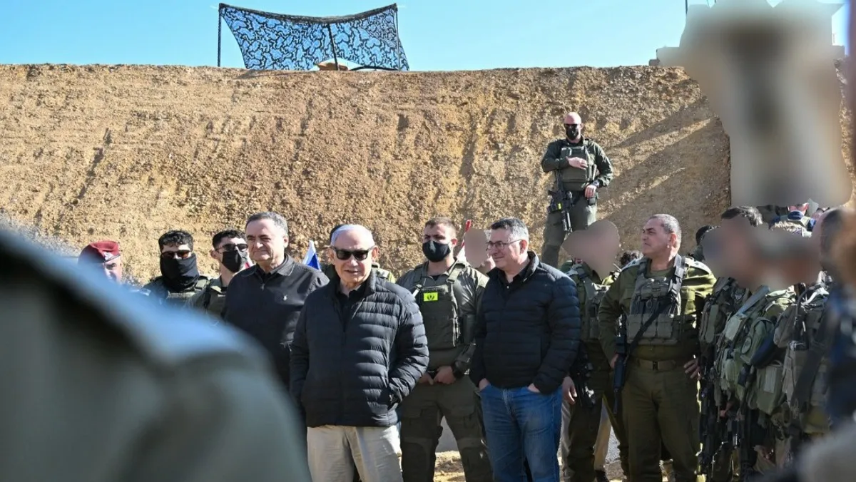 ورافق نتنياهو وزير الدفاع الإسرائيلي يسرائيل كاتس، ووزير الخارجية جدعون ساعر، ورئيس أركان الجيش إيال زامير، ورئيس جهاز الأمن العام الداخلي (الشاباك) دافيد زيني، وتلقّى خلال الجولة إحاطة بشأن الأوضاع في المنطقة.