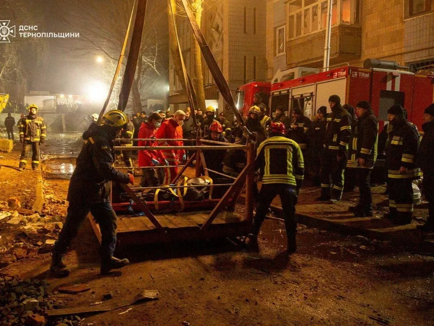 فرق الإنقاذ في موقع تعرض لضربة صاروخية روسية، ترنوبل أوكرانيا، 20 نوفمبر 2025 - via REUTERS