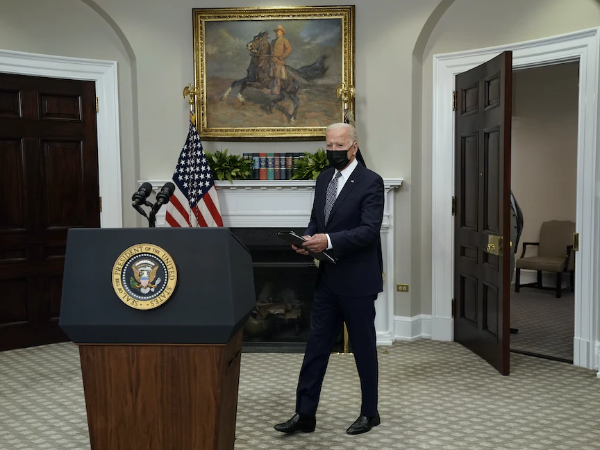 ولفت بايدن إلى أنه كلما طالت مدة بقاء الولايات المتحدة في أفغانستان كان هناك "خطر حاد ومتزايد بوقوع هجوم من قبل جماعة إرهابية تُعرف باسم داعش خراسان"، أو ولاية خراسان في تنظيم داعش، وهو تنظيم "يسعى لاستهداف مطار كابول والقوات الأميركية والمدنيين الأبرياء".
