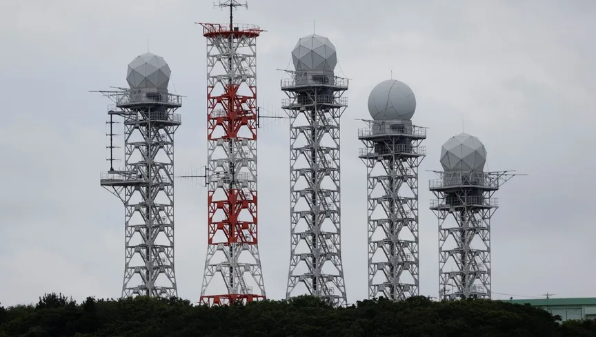 أبراج رادار في قاعدة عسكرية بجزيرة يوناجوني اليابانية. 27 أكتوبر 2021 - REUTERS