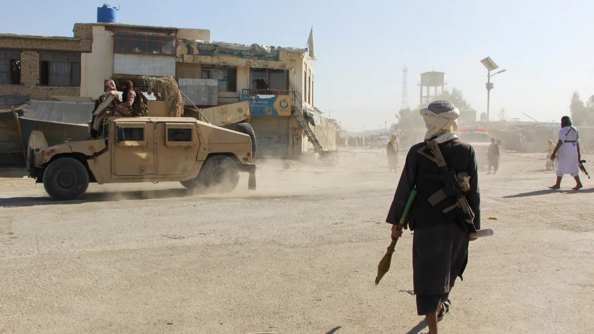 مقاتلو حركة طالبان الأفغانية يقومون بدورية قرب الحدود بين أفغانستان وباكستان في منطقة سبين بولدك، بإقليم قندهار، عقب تبادل إطلاق النار بين القوات الباكستانية والأفغانية داخل الأراضي الأفغانية. 15 أكتوبر 2025. - Reuters