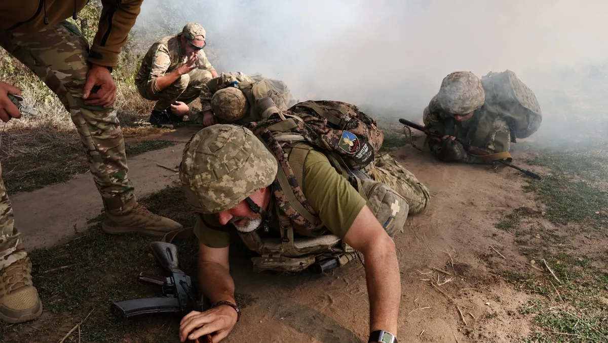 مجندون من اللواء الآلي الخامس والستين التابع للقوات المسلحة الأوكرانية، في تدريب عسكري قرب خط المواجهة، زاباروجيا، أوكرانيا، 21 سبتمبر 2025 - Reuters
