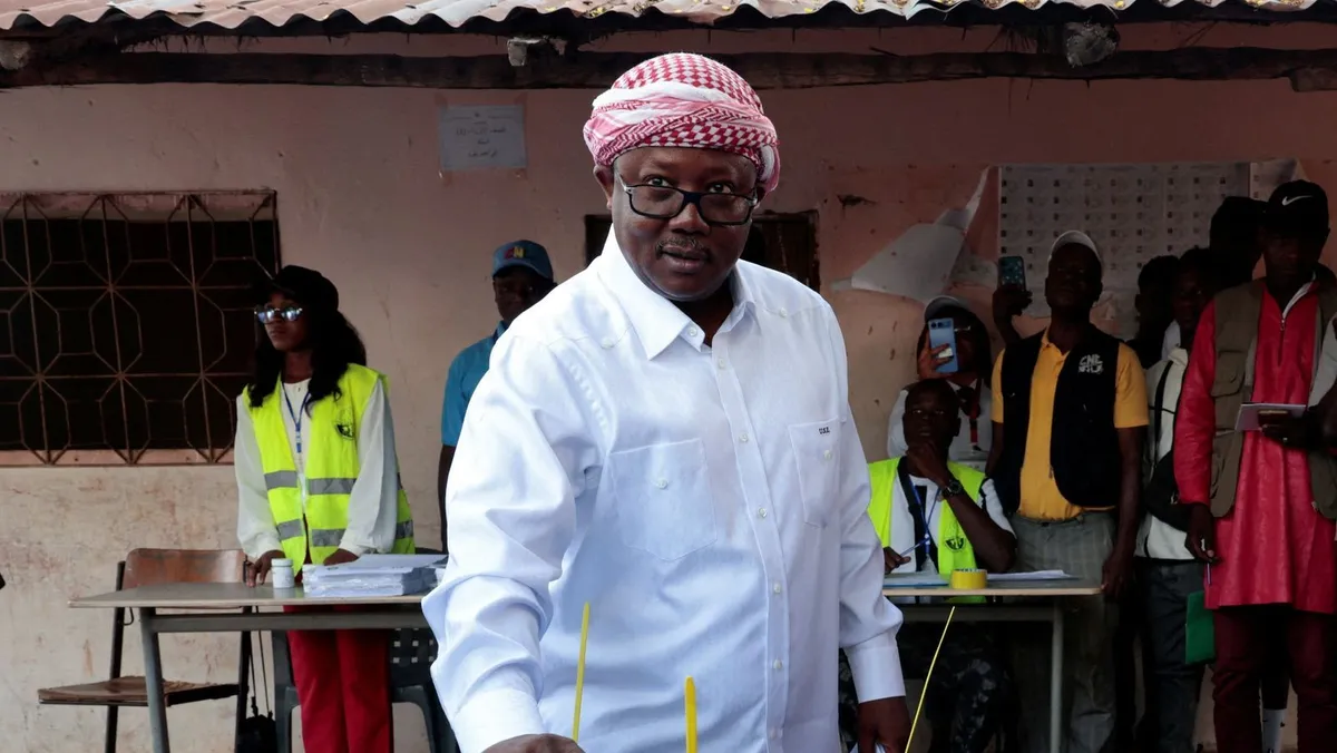 رئيس غينيا بيساو عمر سيسوكو إمبالو يدلي بصوته خلال الانتخابات الرئاسية في مركز اقتراع أومارو دجابولا في غابو، غينيا بيساو، 23 نوفمبر 2025 - REUTERS