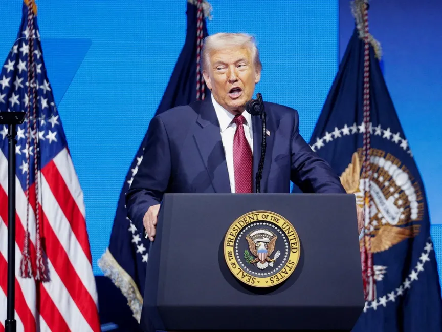 الرئيس الأميركي دونالد ترمب يلقي كلمة في منتدى الأعمال الأميركي في ميامي، فلوريدا، الولايات المتحدة، 5 نوفمبر 2025. - REUTERS
