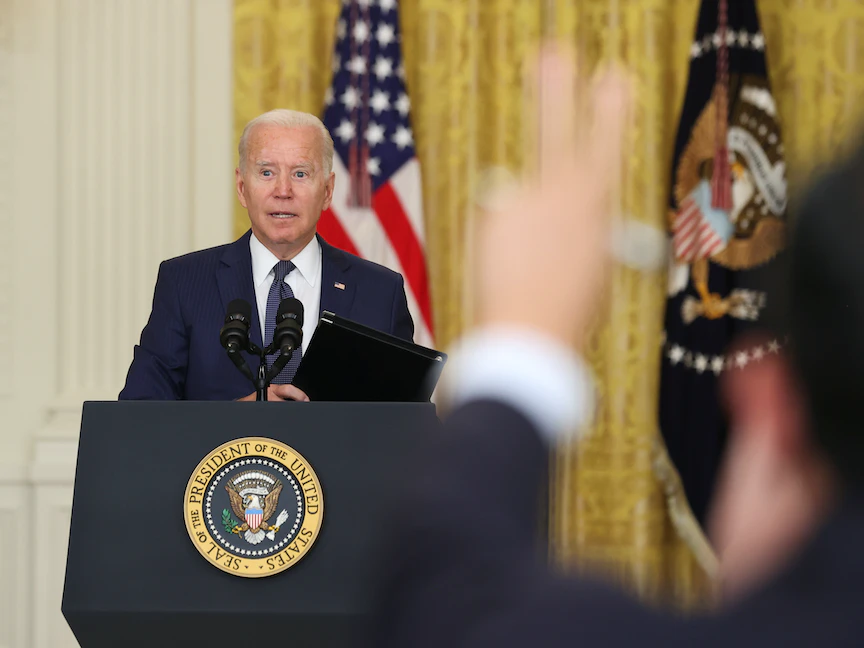 وجدد التزامه بإنجاز انسحاب القوات الأميركية من أفغانستان في 31 أغسطس، على الرغم من الأصوات التي تطالبه، وبعضها من داخل حزبه، بالبقاء إلى ما بعد هذه المهلة النهائية من أجل استكمال عمليات الإجلاء.