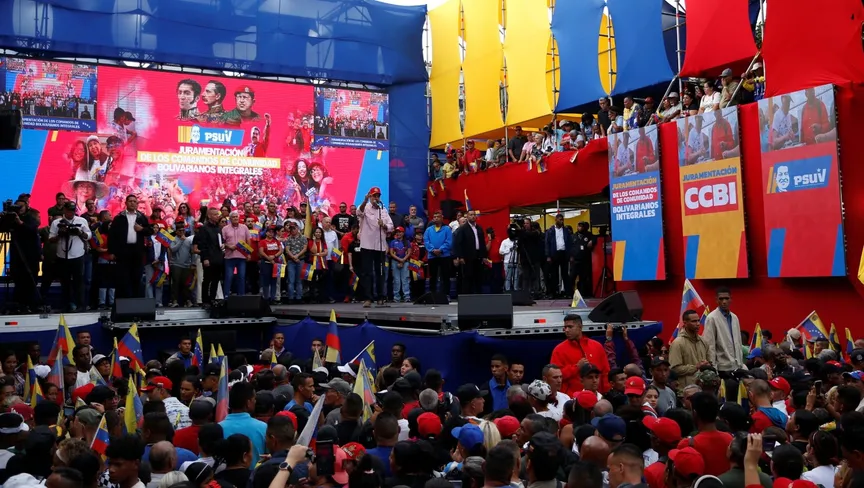 الرئيس الفنزويلي نيكولاس مادورو مع أنصاره قرب قصر الرئاسة في كاراكاس. فنزويلا. 1 ديسمبر 2025 - Reuters