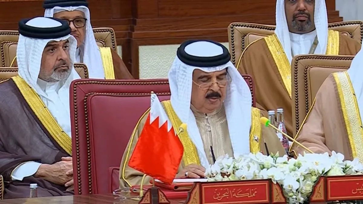 ولفت ملك البحرين إلى "السعي لمعالجة القضايا الإقليمية بما يخدم الاستقرار في المنطقة"، مضيفاً أن "دول مجلس التعاون تمكنت من صياغة نموذج تنمية متكامل يواكب تطلعات شعوبها".