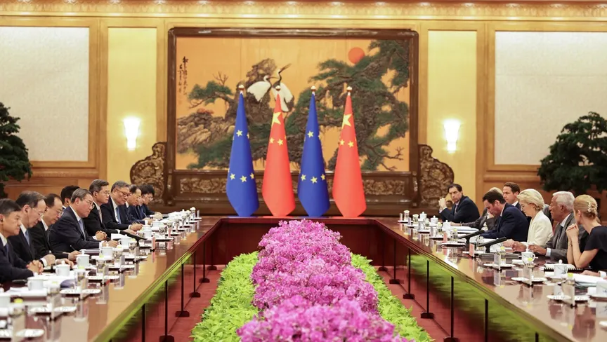 جانب من القمة الخامسة والعشرين بين الاتحاد الأوروبي والصين في قاعة الشعب الكبرى بالعاصمة بكين. 24 يوليو 2025 - REUTERS