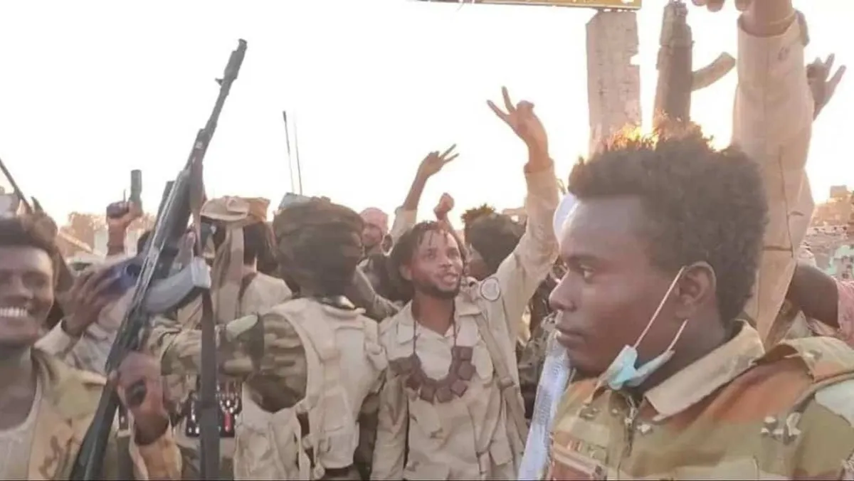 صورة متداولة على وسائل التواصل الاجتماعي لقوة من (الدعم السريع) تحتفي بالسيطرة على مقر الفرقة 22 مشاة التابعة للجيش السوداني بمدينة بابنوسة بولاية غرب كردفان. 1 ديسمبر 2025 - x