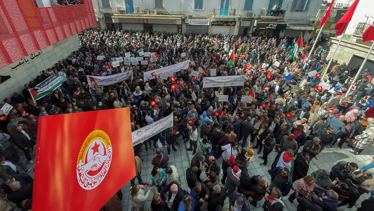 أعلن الاتحاد العام التونسي للشغل، الذي يحظى بتأثير قوي، عن إضراب عام وطني في 21 يناير، احتجاجاً على القيود المفروضة على الحقوق النقابية، وللمطالبة بمفاوضات لزيادة الأجور، وسط توترات اقتصادية وسياسية متفاقمة.