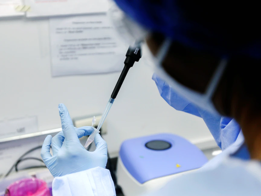 اختبار عيّنة من مصاب بفيروس كورونا خلال فحص مخبري - REUTERS