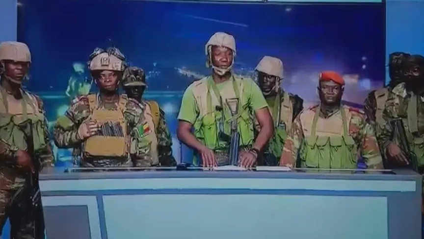 وظهر ضباط على التلفزيون الرسمي باللباس العسكري مدججين بالأسلحة، وأعلنوا وقف العمل بالدستور وحل جميع المؤسسات الحكومية، وتجميد عمل الأحزاب السياسية، وغلق الحدود البرية والجوية والبحرية، وإقالة تالون (67 عاماً) الذي يقود البلاد منذ عام 2016، والذي يشغل أيضاً منصب رئيس الاتحاد الاقتصادي والنقدي لغرب إفريقيا.