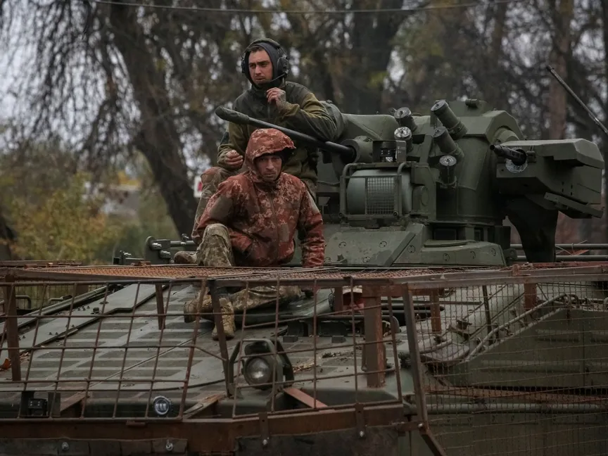 جنود أوكرانيون على خط المواجهة مع القوات الروسية في منطقة دونيتسك شرقي أوكرانيا. 21 أكتوبر 2025 - Reuters