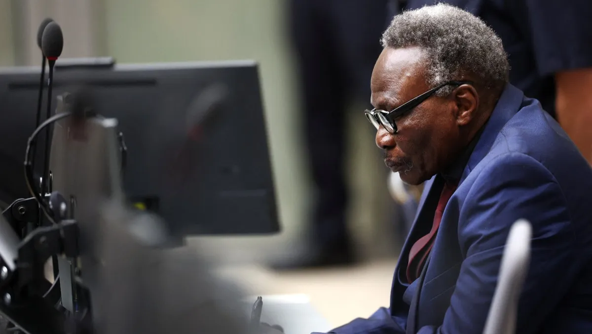 علي محمد عبد الرحمن المشتبه به بارتكاب جرائم حرب في منطقة دارفور بالسودان خلال إحدى جلسات محاكمته في المحكمة الجنائية الدولية في لاهاي. هولندا. 6 أكتوبر 2025 - reuters
